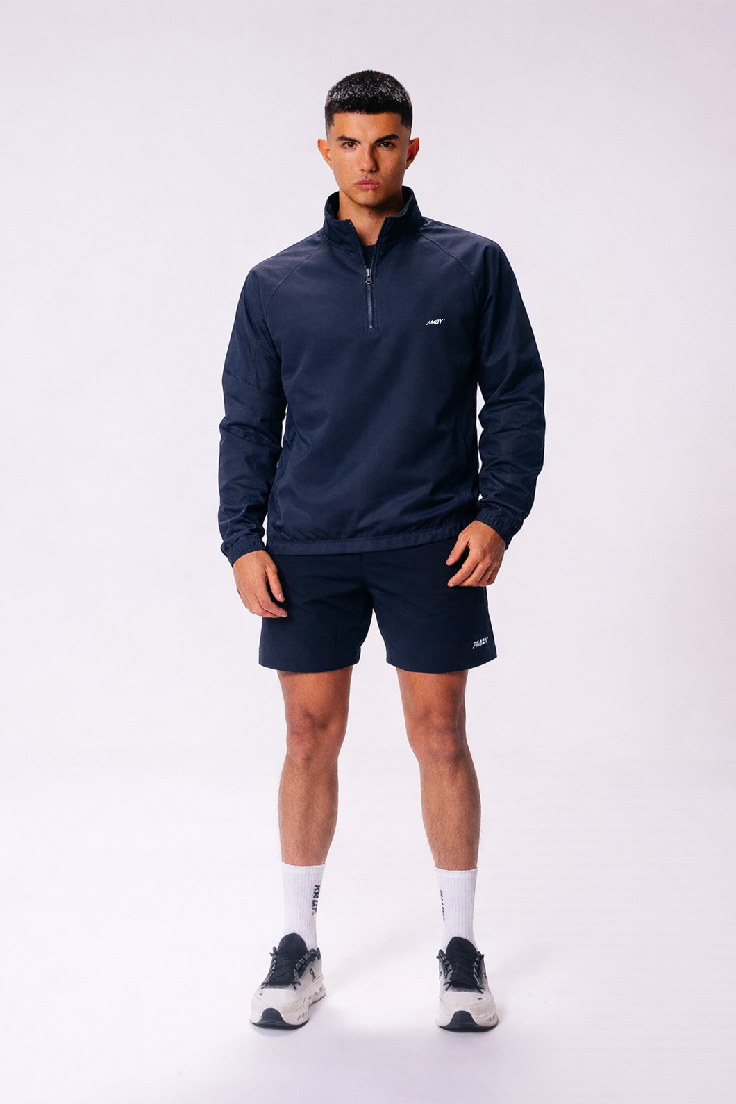 Crafted from a smooth, stretch performance fabric, internal mesh lining that regulates temperature while maintaining a clean, minimal aesthetic.