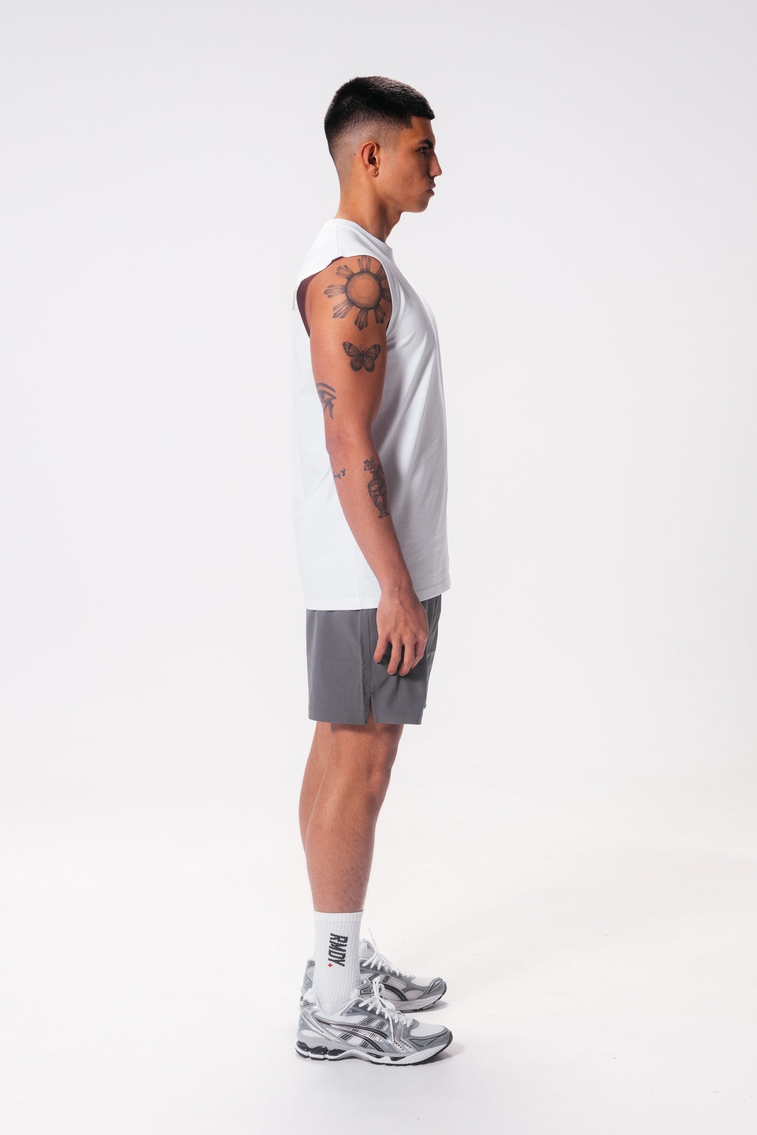 Sleeveless cut to enhance shoulder and arm definition